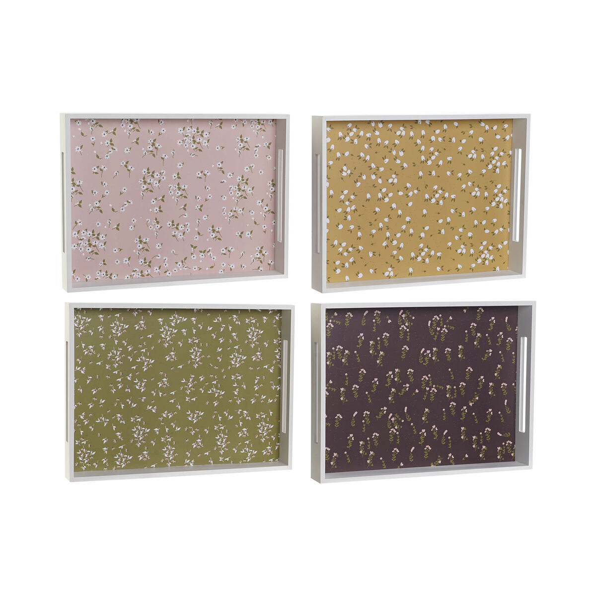 Bandeja DKD Home Decor Verde Mostaza Marrón oscuro Rosa claro Madera MDF 40 x 30 x 5 cm (4 Unidades) al mejor precio.