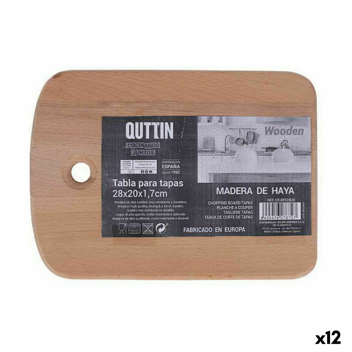Si te gusta cuidar cada detalle de tu hogar y estar a la última en productos que te harán la vida más facil, compra Tabla de cortar Quttin 28 x 20 x 1,7 cm (12 Unidades) al mejor precio.- Tipo: Menaje y utensilios de cocina